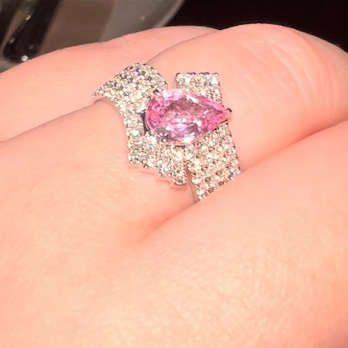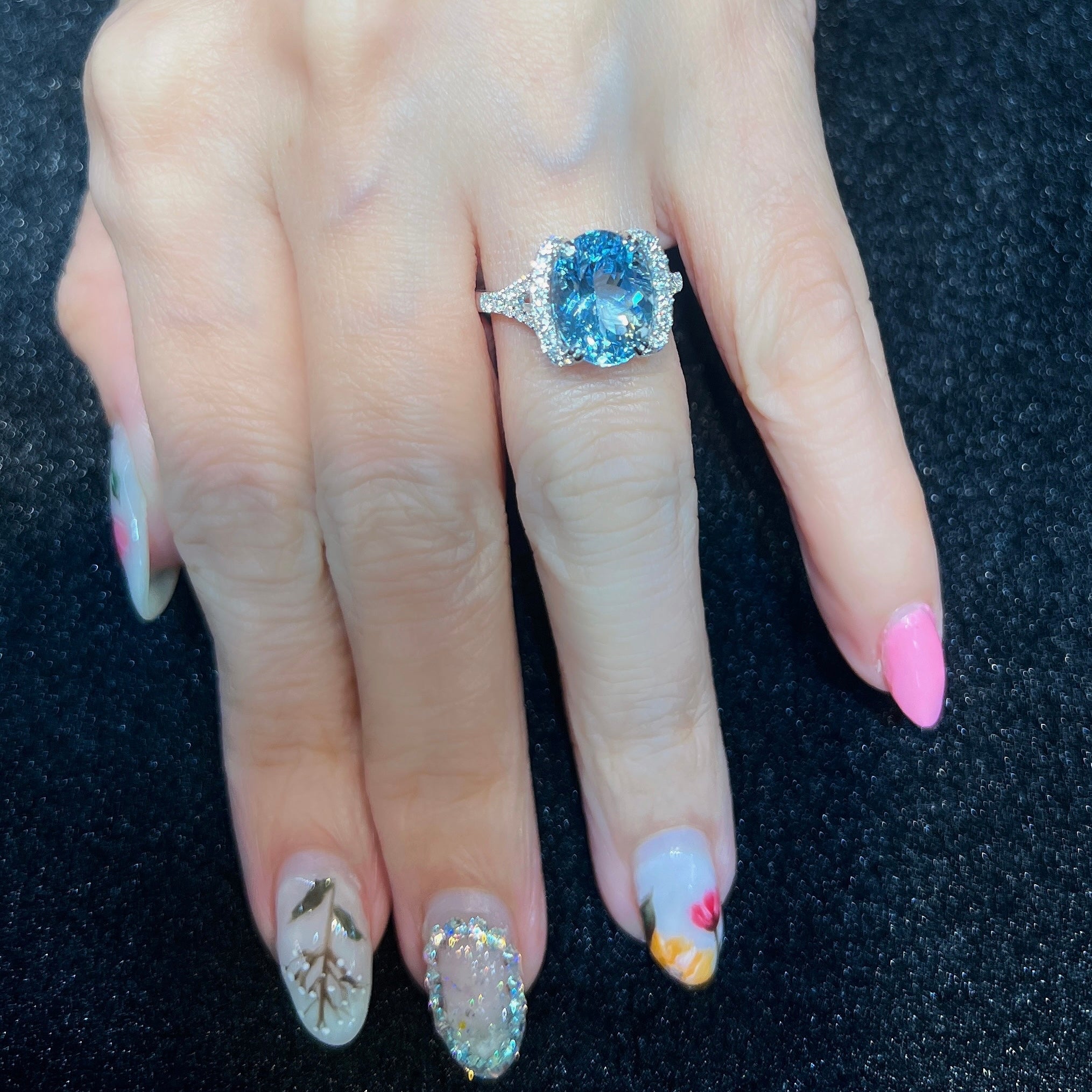 Bought this lovely ring online. Desiree Gems is very helpful, patiently sending me pictures and videos indoors and outdoors from different angle and lightings. Shipping is pretty fast too. On the day I received the parcel, the ring is gorgeous, even better than expected. Lovely!!